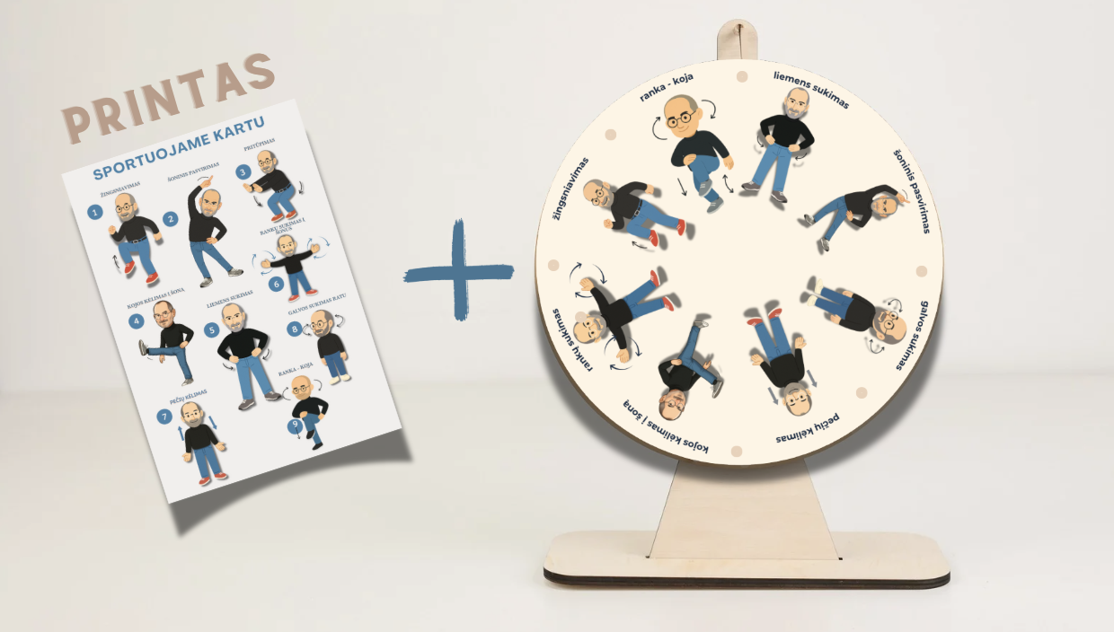 Praktinis naudojimas – vaikai patys gali sukti ratą ir pasirinkti pratimą!