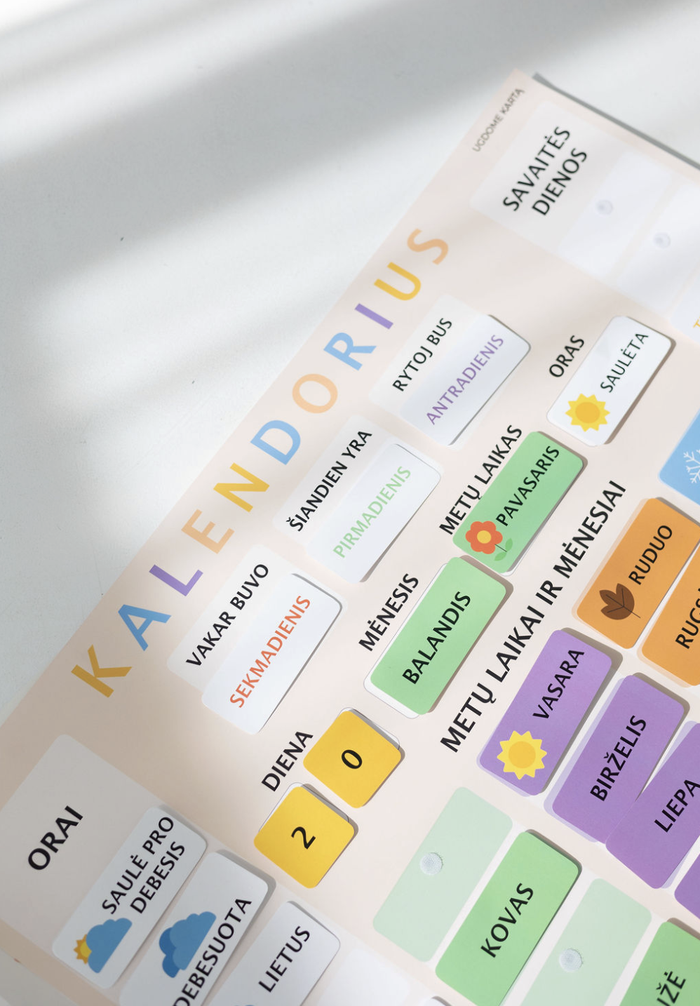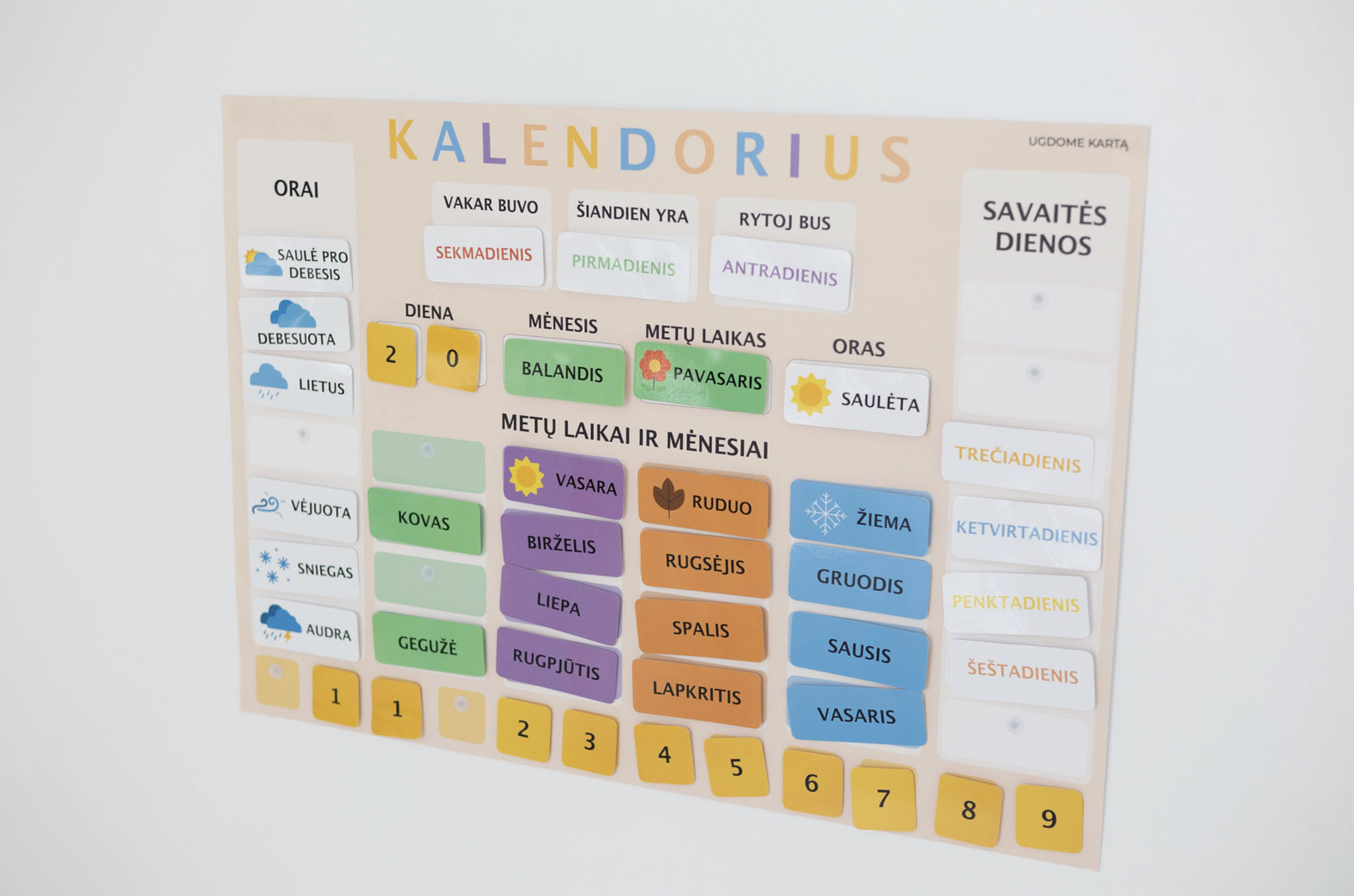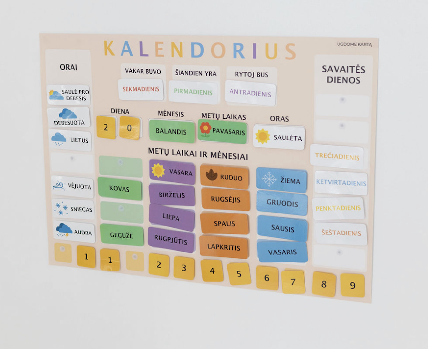 Kalendorius vaikams – tai vizualinė ir interaktyvi priemonė, padedanti vaikams lengvai suprasti laiką, dienų seką, mėnesius ir metų laikus.