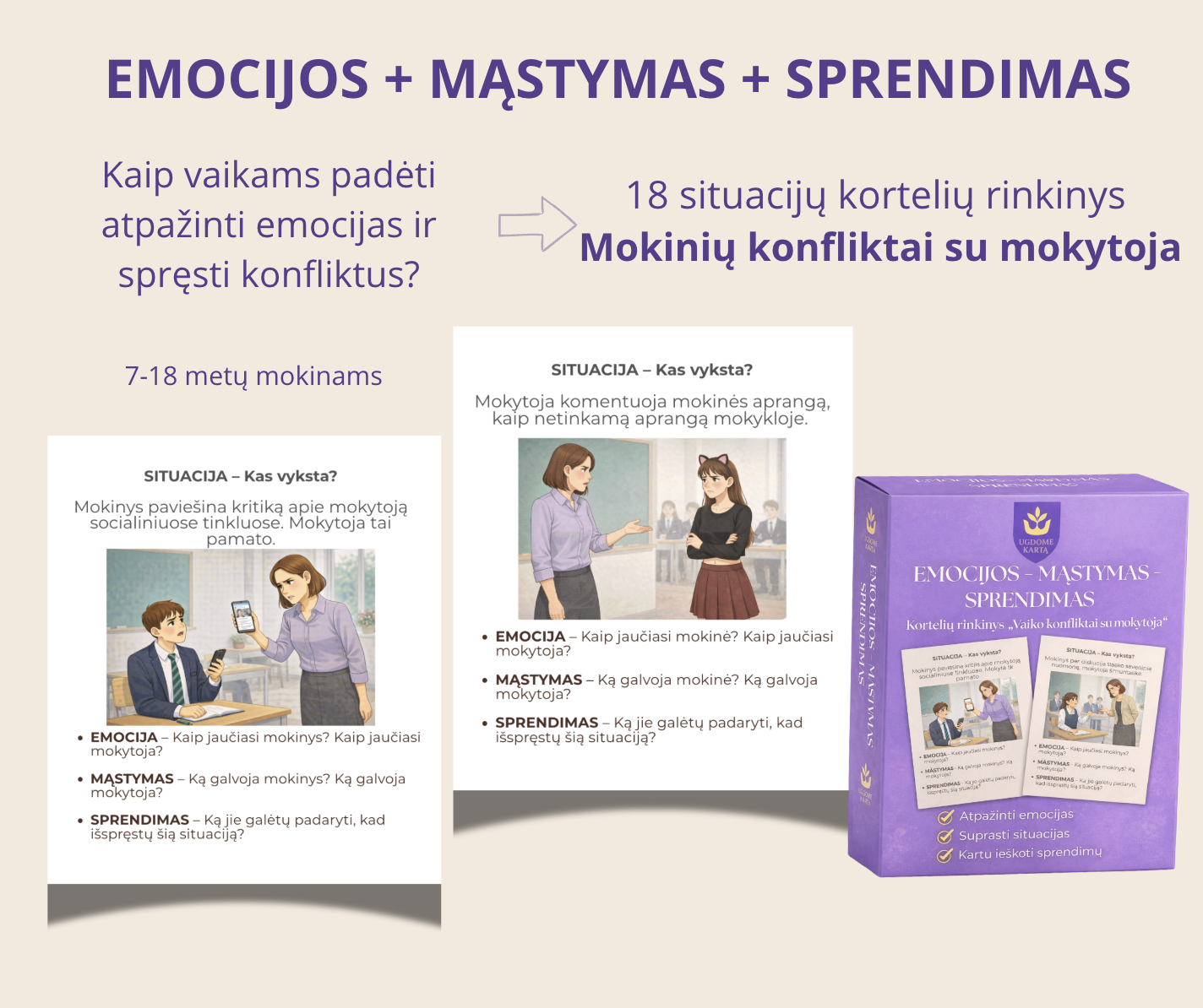 Kortelių rinkinys „Mokinių konfliktai su mokytoja“ – 7 -18 m. mokiniams